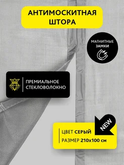Москитная сетка на дверь на магнитах 210 на 100, серая
