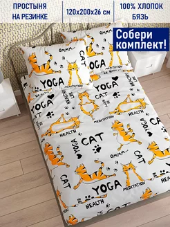Простынь на резинке 120х200 Yogacat бязь