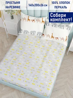 Простынь на резинке 140х200 х26 перкаль Саванна (компаньон)