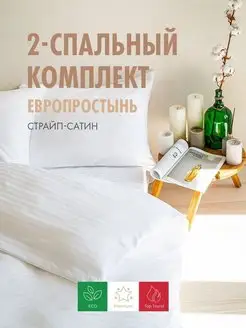 Постельное Белье 2 Спальное Сатин Страйп с евро простыней