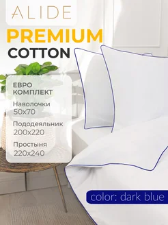 Постельное Белье с кантом Евро Сатин Синий Кант Люкс