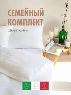 Постельное Белье Семейное Сатин Страйп Белый