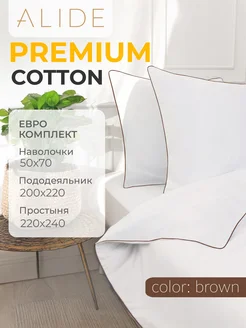 Постельное Белье с кантом Евро Сатин Коричневый Кант Люкс