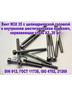 Винт М3Х35 под шестигранник, нержавеющая сталь А2