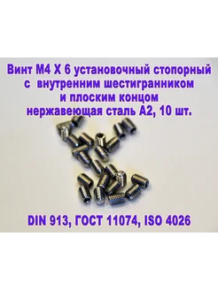 DIN 913. Винт М4 Х 6 стопорный. Нержавеющая сталь