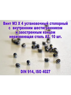 DIN 914. Винт М3 X 4 стопорный. Нержавеющая сталь