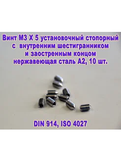 DIN 914. Винт М3 X 5 стопорный. Нержавеющая сталь