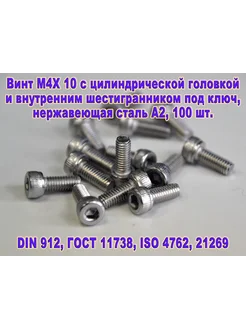 DIN 912. Винт М4Х10 под шестигранник, нержавеющая сталь