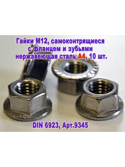 DIN 6923. Гайка самоконтрящаяся М 12 нержавеющая сталь А4