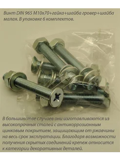 Набор винт din965 m10x70+гайка+шайба+гровер