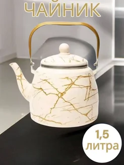Чайник эмалированный для плиты белый мрамор 1,5л