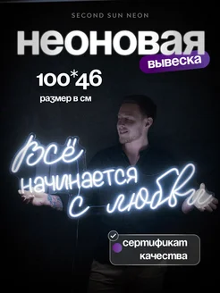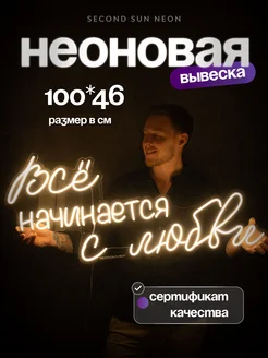 Неоновая вывеска на свадьбу Всё начинается с любви