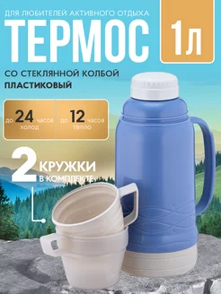 Термос для чая и кофе с литровой стеклянной колбой 1 литр