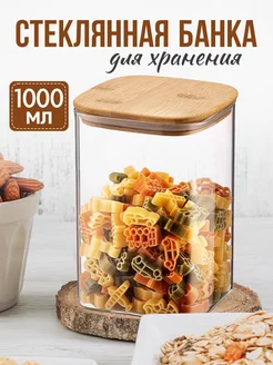 Стеклянная банка для хранения сыпучих продуктов и круп 1л