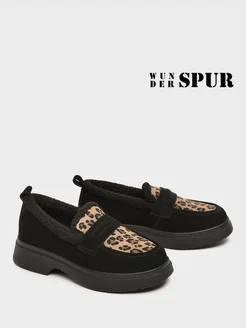Лоферы туфли замшевые с мехом леопард Эль Темпо
