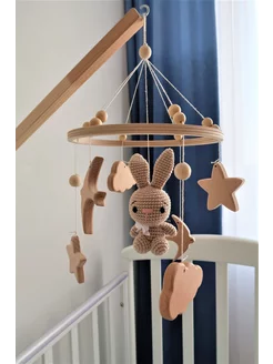 Мобиль в кроватку для новорожденных из дерева Зайчик