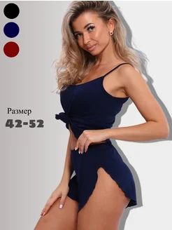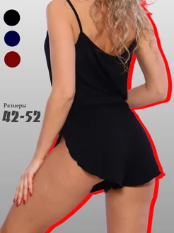 Пижама с шортами и топом на бретельках черная домашняя секси