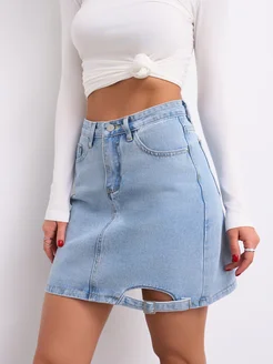 Юбка джинсовая мини с высокой посадкой, стрейч