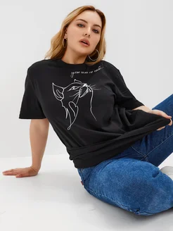 Черная футболка с принтом Кошка "Гуляю сама по себе"