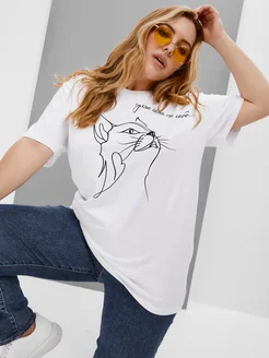 Белая футболка с принтом Кошка "Гуляю сама по себе"