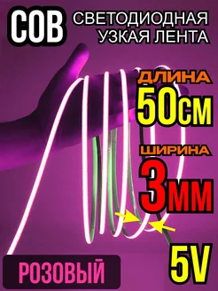 Светодиодная узкая COB лента 5 вольт 50см розовый