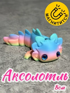 3D Аксолотль малыш 8см подвижная игрушка антистресс радужный