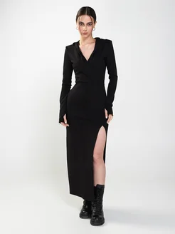 Платье длинное с разрезом на ноге и капюшоном