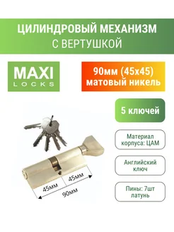 Цилиндровый механизм 90мм (45х45) с вертушкой Матовый никель