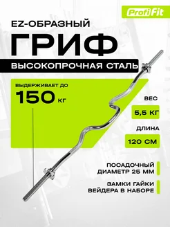 Гриф для штанги EZ-образный 120 см, D 25 мм