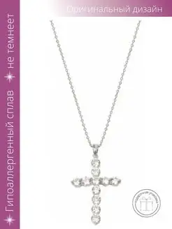 Подвеска крест с цепочкой колье под серебро с камнем новинка