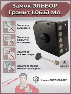 Замок накладной для двери гаражный Гранит 1.06.51МА