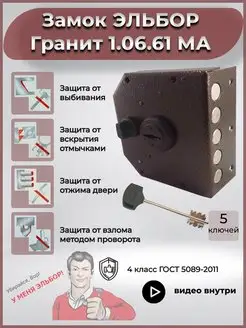 Замок накладной для двери гаражный Гранит 1.06.61МА