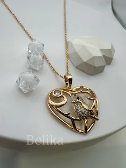 Позолоченный кулон птичка на ветке в сердце с цепочкой 45 см