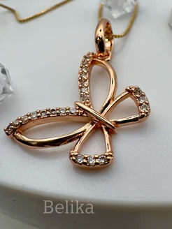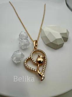 Позолоченный кулон Роза в сердце с цепочкой 45см