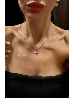 Подвеска крест с фианитами 24 мм с цепочкой 45 см