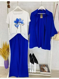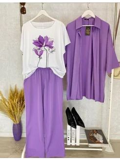 Женский летний стильный костюм тройка большие размера