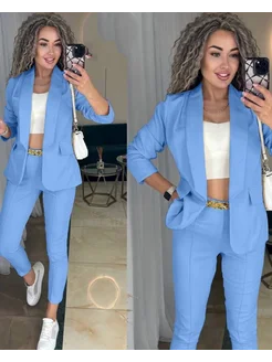Женски брючный костюм пиджак трикотажный