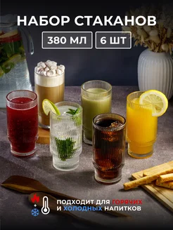 Набор стеклянных ребристых стаканов 6 шт для сока и кофе