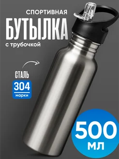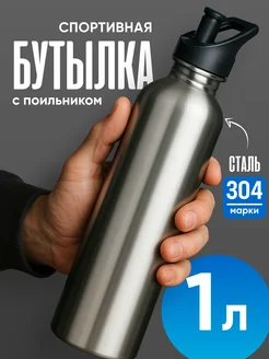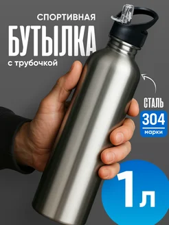 Бутылка для воды с трубочкой металлическая 1000 мл