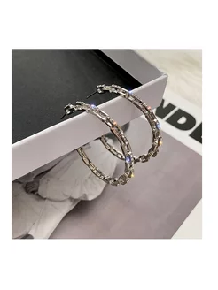 Блестящие геометрические серьги кольца со стразами