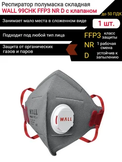 Респиратор полумаска складная 99 СHK FFP3 NR D