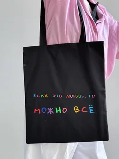 Шоппер сумка на молнии с надписью тканевая