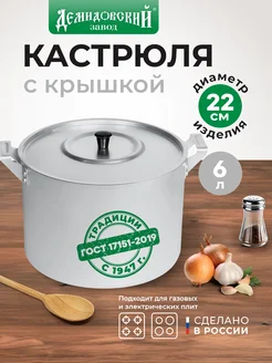 Алюминиевая кастрюля с крышкой 6 л матовая