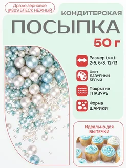 Кондитерская посыпка рисовое драже белый, лазурный 50 г 809