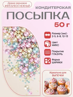 Посыпка кондитерская жемчуг белый драже зерновое 50г 736