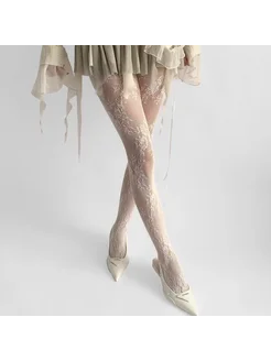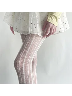 Кружевные ажурные колготки в полоску белые рост 150-172