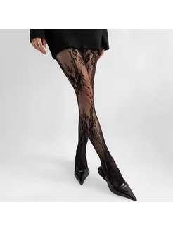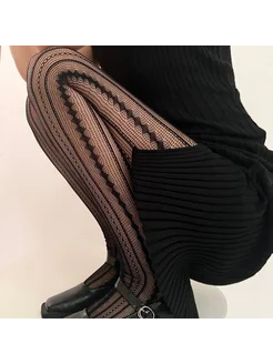 Кружевные ажурные колготки в полоску черные рост 150-172
