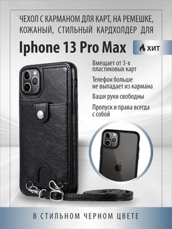 Кожаный чехол на iphone 11 pro max картхолдер на ремешке