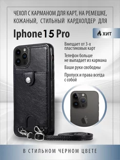 Кожаный чехол на iPhone 15 Pro картхолдер