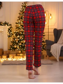 Брюки красная клетка домашние на резинке хлопок новогодние
